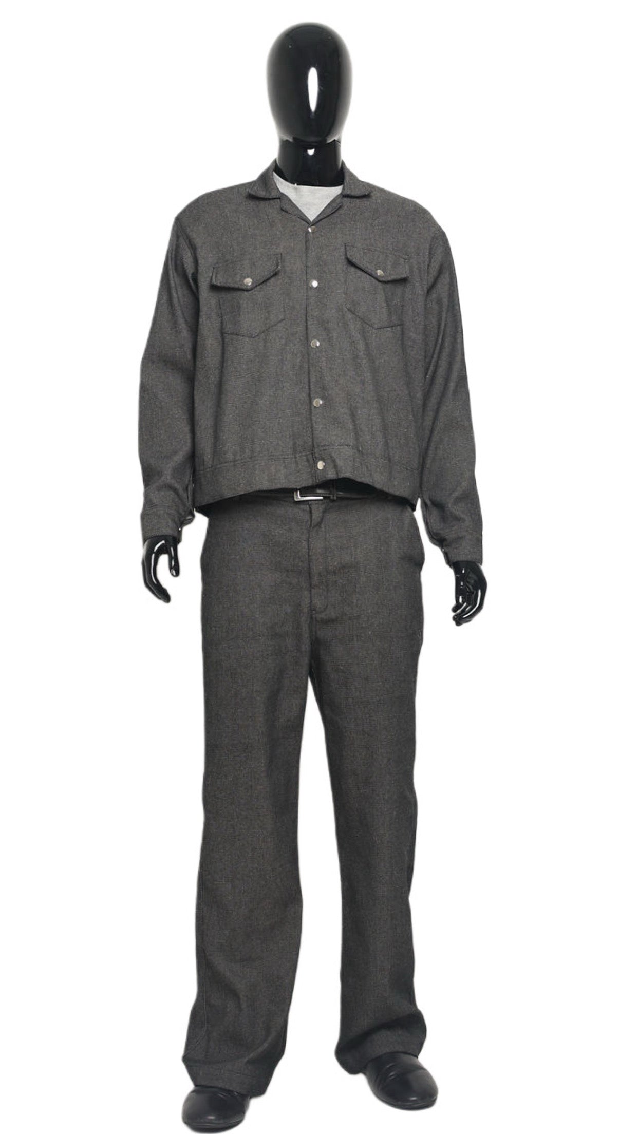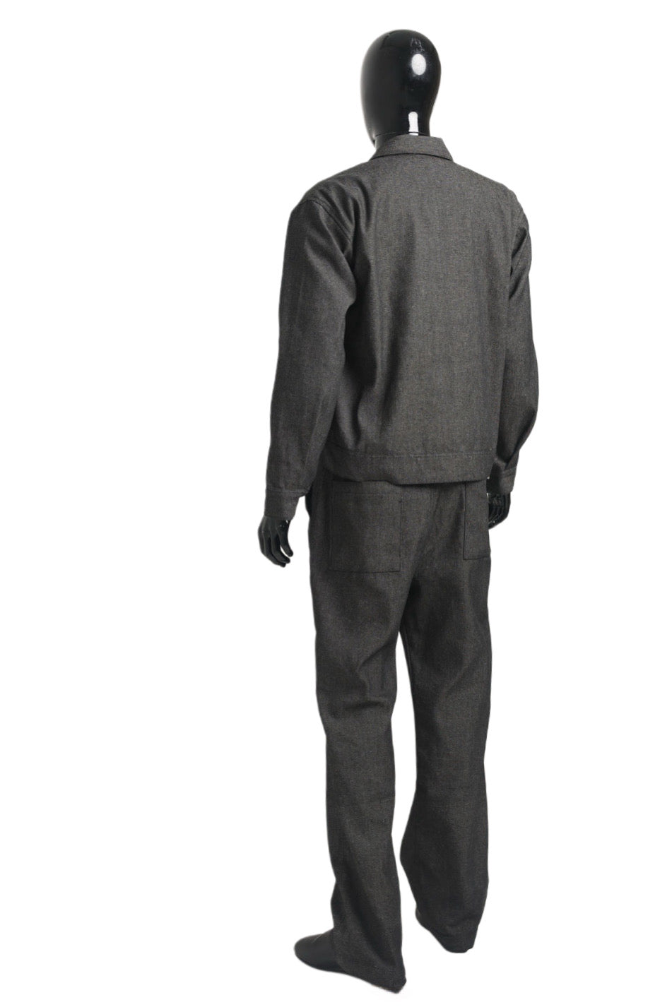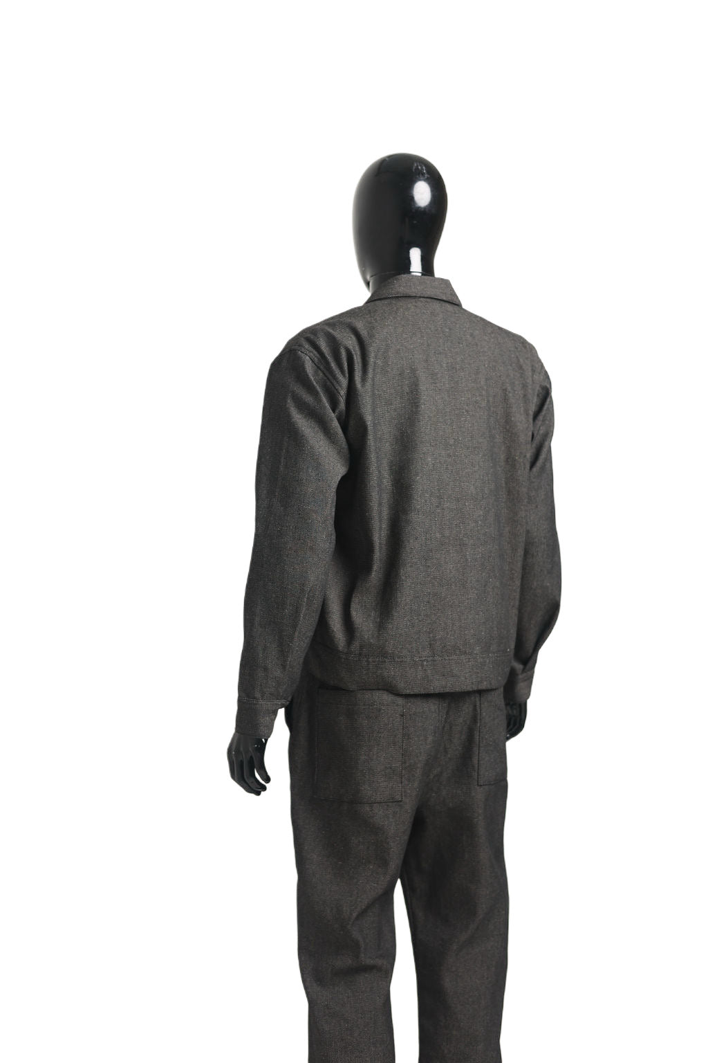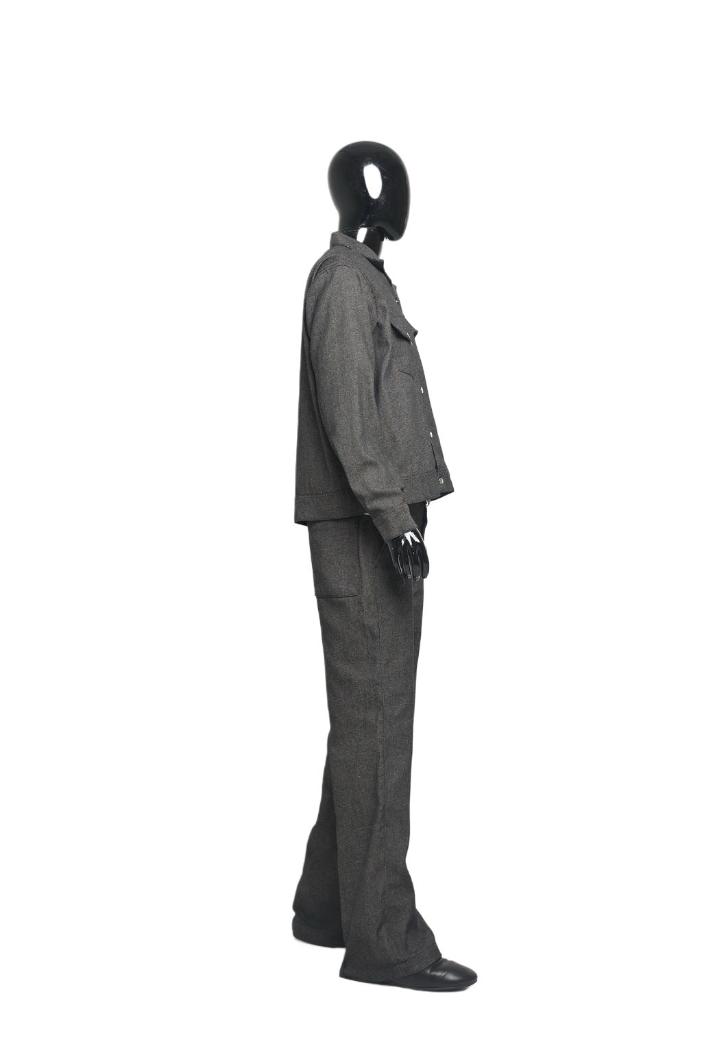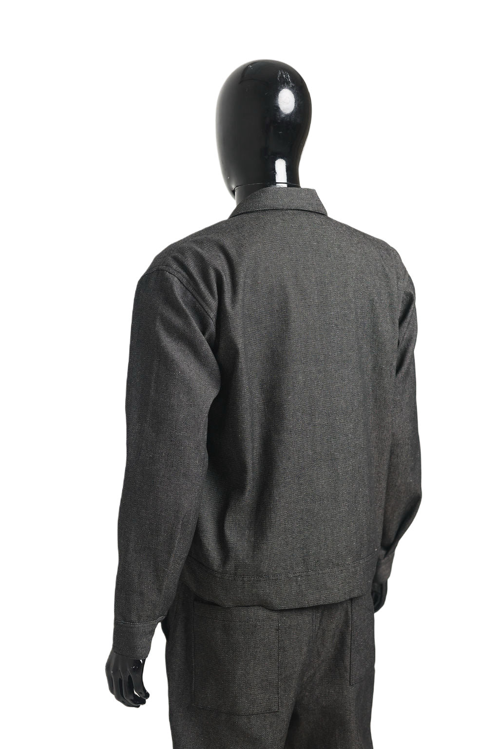 Denim fabric contrast black and white throughout.